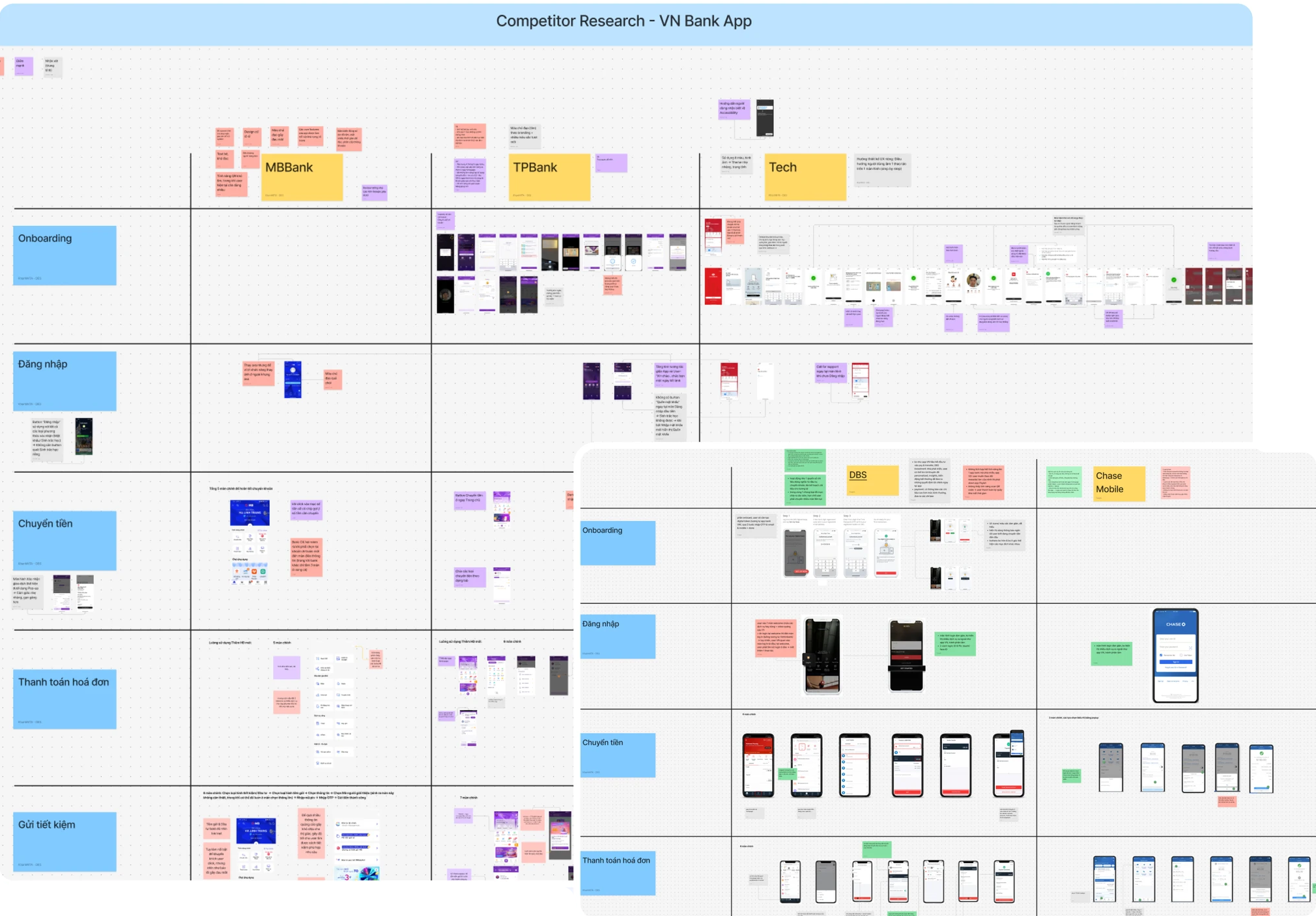 In the Vietnamese market, we analyzed digital banking apps such as TPBank, MBBank, BIDV, and Techcombank. For international benchmarks, we reviewed platforms from DBS, Citibank, HSBC, and Chase Mobile.